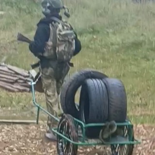 ЭКЗО прицеп для перевозки грузов пешком в полевых условиях. Важные элементы - быстросброс, осколко защищённые колеса...