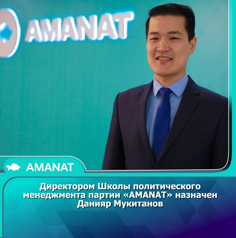 Президенттік Жастар кадрлық резервінің мүшесі Данияр Мұқитанов «AMANAT» партиясы Саяси менеджмент мектебінің директоры болып тағайындалды.