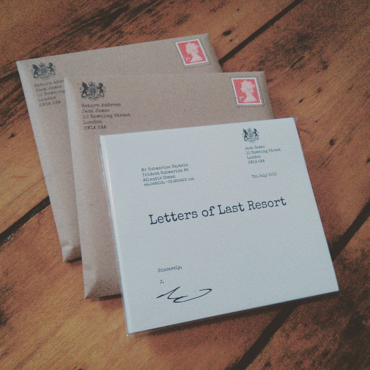Лише уявіть, як під час створення листа чорнила просочують папір і думки прем'єр-міністра. До того, як віддати свій гіпотетичний останній наказ, начальник штабу оборони Великої Британії інформує автора про всі можливі наслідки обраного рішення. Саме те, що написано в листі, буде виконано після падіння уряду в разі ядерної атаки. Про це капітан субмарини може дізнатися не лише через захищені канали, а й по радіо, оскільки офіційною ознакою падіння держави є відсутність трансляції BBC Radio 4. До речі, у 2004 році тимчасове відключення електроенергії на радіостанції спричинило короткострокову військову тривогу на атомних субмаринах!