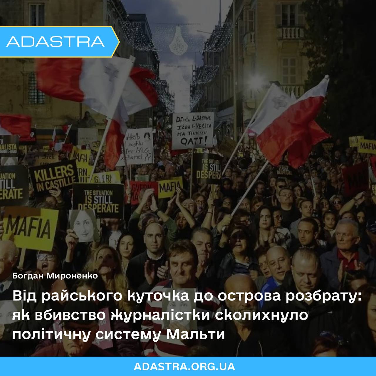 🇲🇹 На тлі гучних політичних скандалів у «великих» державах ЄС, як-от Італії чи Франції, маленька Мальта може здатися ледь не взірцем спокою. Проте саме в цьому «райському куточку» 5 років тому неочікувано сталася подія, що вразила весь світ, – вбивство журналістки-розслідувачки Дафни Каруани Галіції.