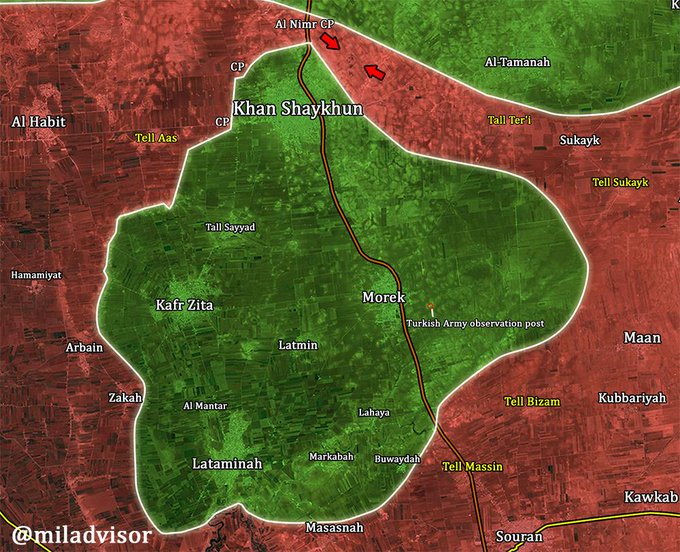 Сирийская армия взяла наконец стратегическую высоту Таль-Тари на восточном фланге Хан-Шейхуна спустя 3 дня боёв.