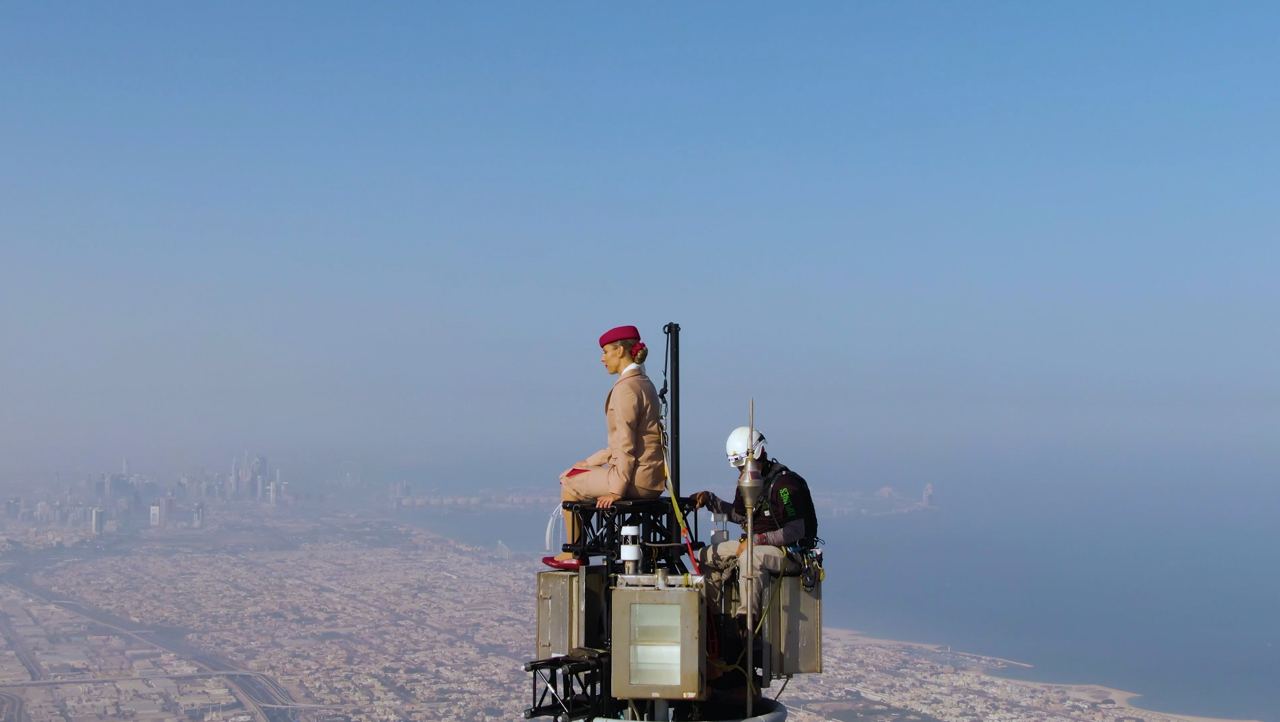 Самая высокая (буквально) реклама в мире была снята за 5 часов. Николь Смит-Людвик в униформе Emirates была закреплена на платформе потайным страховочным тросом. А для съемок был использвован вертолёт и один беспилотник.