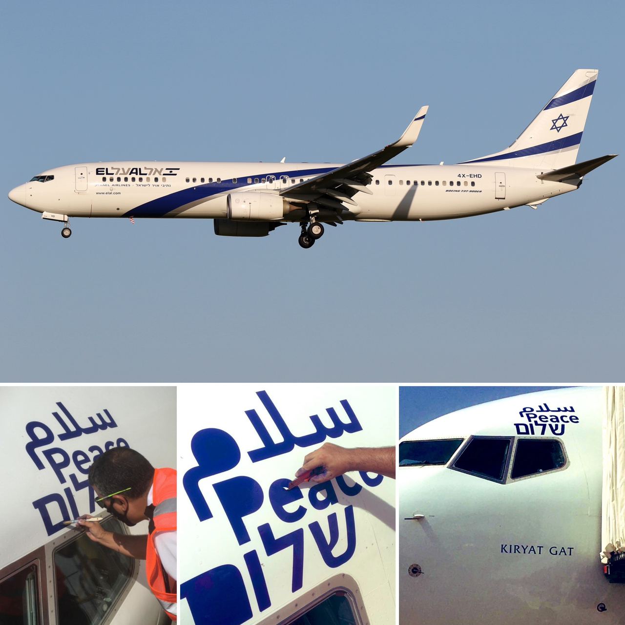 К этому событию самолёт, который выполнит рейс LY971 из аэропорта Тель-Авива Бен Гурион (TLV/LLBG) в Абу Даби (AUH/OMAA) и обратный LY972 на следующий день, украсили специальной небольшой наклейкой с надписью «Мир» на на иврите (שלום), арабском (سلام) и английском (Peace) языках.