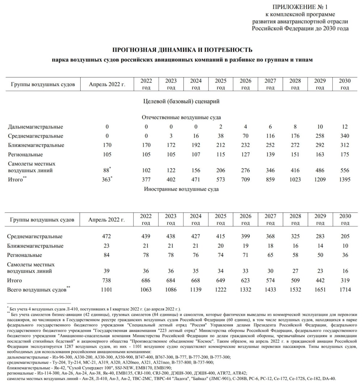 Согласно программе до 2030 года парк российских авиакомпаний должны пополнить: более 1 тыс. отечественных самолетов, более 760 вертолетов, около 5 тыс. двигателей для самолетов и вертолетов.