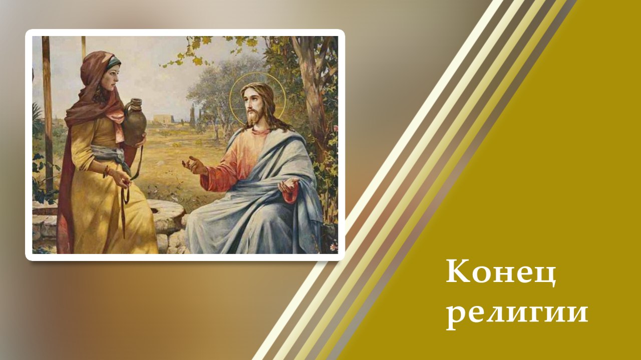 В глубочайшем смысле, христианство означает конец религии. В евангельском рассказе о встрече с Самарянкой у колодца Иакова, Христос не оставляет по этому поводу никаких сомнений. «Господи — говорит Ему женщина — вижу, что Ты пророк. Отцы наши поклонялись на этой горе, а вы говорите, что место, где должно поклоняться, находится в Иерусалиме», Спаситель говорит ей: «Поверь, что наступает время, когда и не на горе сей, и не в Иерусалиме будете поклоняться Отцу... Но настанет время, и настало уже, когда истинные поклонники будут поклоняться Отцу в духе и истине, ибо таких поклонников Отец ищет Себе» (Ин. 4, 19—21 : 23). Самарянка задала вопрос о культе, т.е. о религии, а Иисус, отвечая ей, коренным образом изменил сам вопрос. Нигде в Новом Завете христианство не явлено нам, как „культ" или «религия». Ибо религия нужна там, где существует непроходимая преграда между Богом и человеком. Но Богочеловек Иисус Христос разрушил эту стену, ибо возвратил и даровал нам не новую «религию», а новую жизнь.