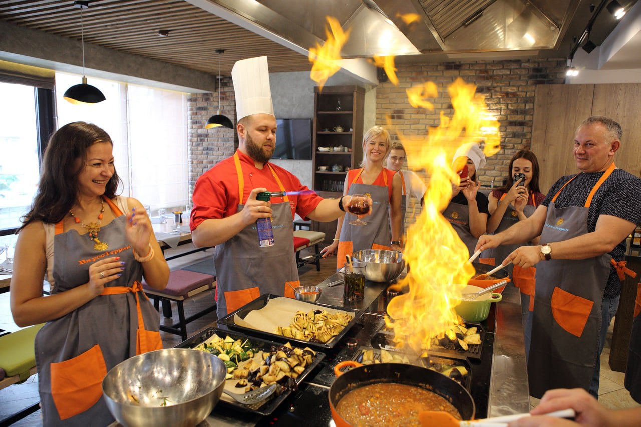 Здесь можно выбрать сценарий под любой формат: от дня рождения, выпускного, детского праздника до корпоратива, свадьбы, выезда на природу. И это далеко не всё! Можно просто пойти на открытый мастер-класс и познакомиться с интересными людьми, посоревноваться в искусстве приготовления изысканных блюд, а потом насладиться кулинарными шедеврами, обменявшись яркими впечатлениями.