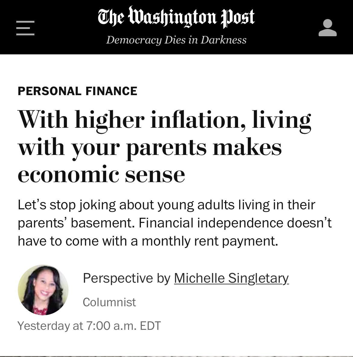🧐При более высокой инфляции жизнь с родителями имеет экономический смысл, пишет Вашингтон пост о реалиях потребительского поведения в США. 👉🏻