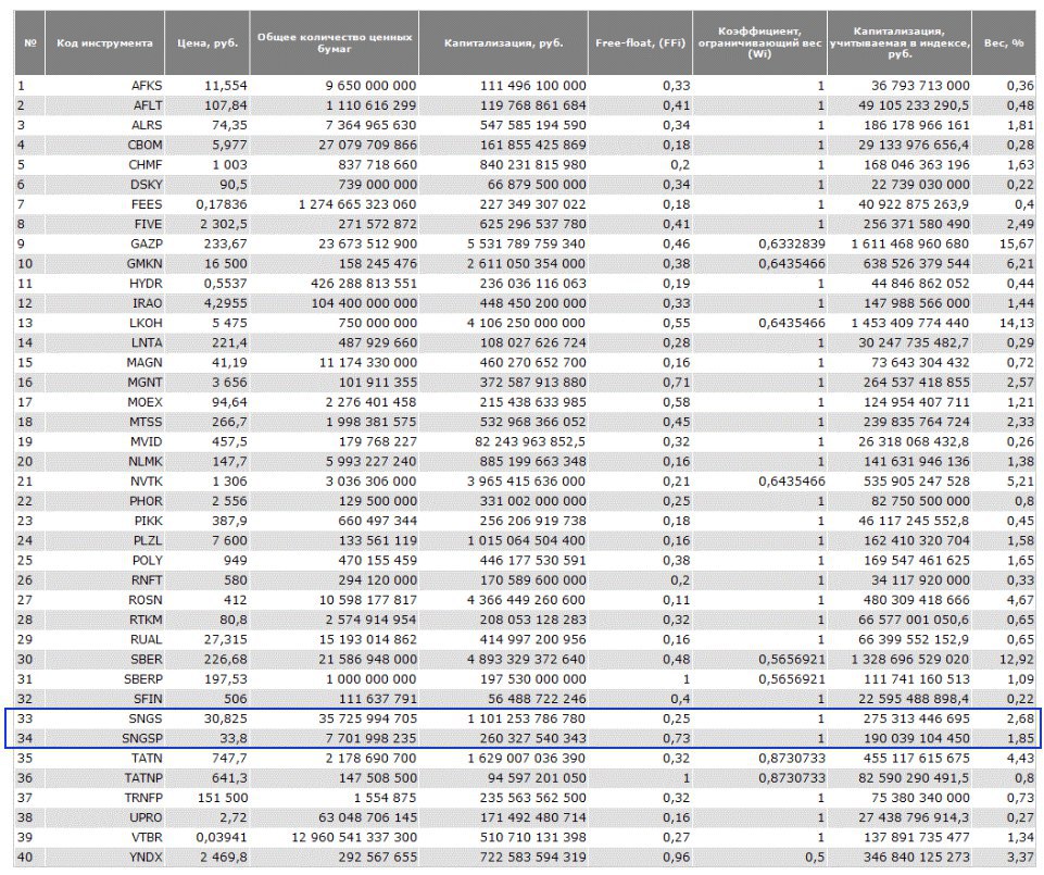 • Суммарный вес акций Сургутнефтегаза в индексе Мосбиржи - 4,53%. Такой доли и темпа роста хватило, чтобы сегодня не дать индексу упасть: MOEX теряет всего 0,17%, при том, что голубые фишки в минусе на 1-2%, нефть упала на 1,65%, а фьючерс на S&P500 теряет 0,75%.
