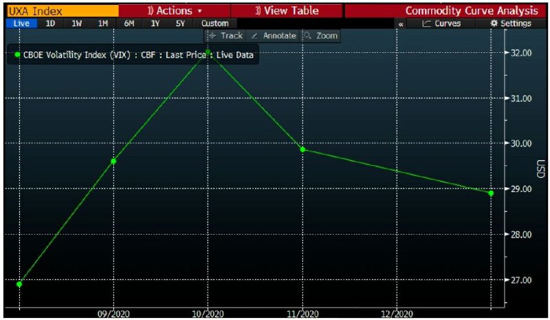 Как инвесторы оценивают перспективу спорных выборов? Очень осторожно (ха-ха). В четверг Трамп написал в твиттере о возможности отсрочки ноябрьских выборов, предложив отложить их “до тех пор, пока люди не смогут должным образом, надежно и безопасно проголосовать” и намекнув, что любая попытка заменить личные избирательные участки голосованием по почте приведет к мошенничеству. Индекс доллара упал вместе с фьючерсами на акции США, хотя трудно дезагрегировать эти движения из отчета по ВВП США, опубликованного всего за несколько минут до твита Трампа. Однако если вы действительно хотите увидеть потенциальное воздействие, взгляните на VIX. Как отмечает Бен Эмонс из Medley Global Advisors, существует "последовательность в VIX по сравнению с волатильностью процентных ставок, валют и сырьевых товаров", и она подскочила на 4,19 пункта до 28,29.