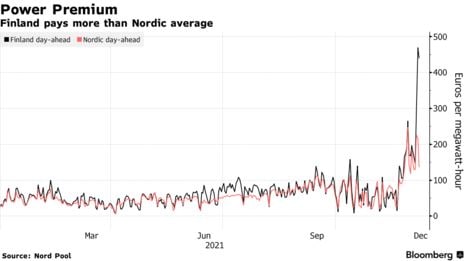 В этом году электроэнергия в Финляндии стоила на 15 % дороже, чем в среднем по Северной Европе, при этом стране необходимо импортировать до четверти своего пикового спроса зимой из-за нехватки генерирующих мощностей. Недавнее похолодание только усугубило беды.