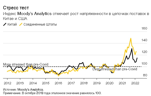 Аналитический показатель Moody's показывает, что дефицит предложения в двух крупнейших экономиках мира, США и Китае, по-прежнему значительно превышает допандемическую норму.
