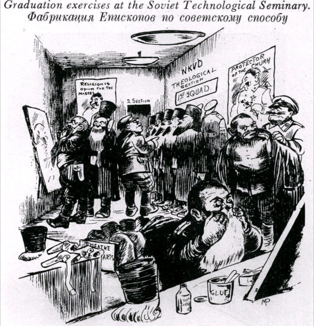 Большевики намерено уничтожали Церковь бывшую важной частью национальной культуры, без победы над которой Красные не могли лишить людей права на их землю, лишить корней. Институт Церкви был разрушен Лениным, а Сталин «воссоздал» его на базе одного из управлений КГБ, что до сих пор верно служит коммунистам в Кремле, в том числе на войне.