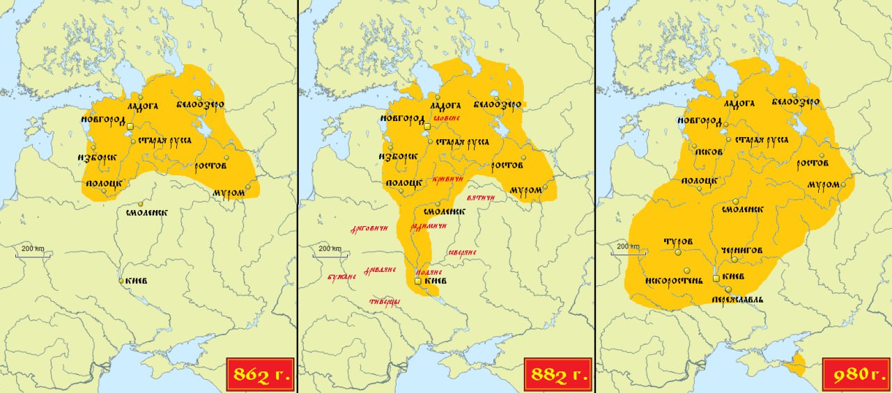 🔱В Киев столица Руси была перенесена преемником Рюрика Олегом Вещим в 882 году (после завоевания города и подчинения местных славянских племён) ввиду более удачного торгового положения и плодородности почв. Менее чем через сто лет, по тем же причинам, внук Рюрика Святослав Игоревич хотел снова перенести стольный град ещё южнее в Переяславец (его точное местонахождение неизвестно, идентифицируется с городами в Болгарии и Румынии), но так и не смог убитый печенегами.