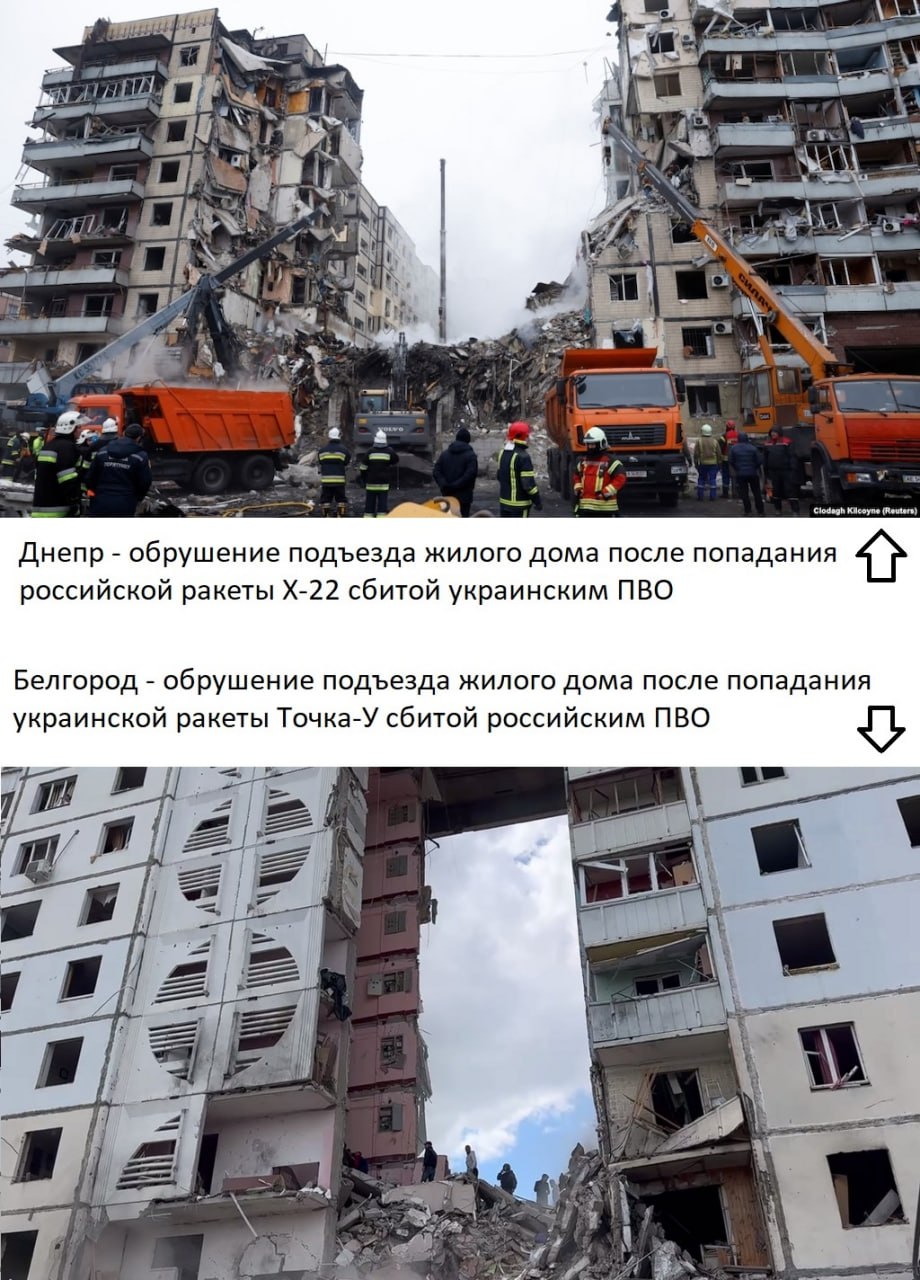 Обрушение части многоэтажного дома в Белгороде после попадания украинской ракеты снова доказало единство ваты и вышиваты, их гнилое советское нутро. В духе Z-вурдалаков оправдывающих бомбардировки украинских городов, БСБ-вурдалаки ринулись оправдывать бомбардировку Белгорода, в диапазоне от «вы сами начали» и «все пострадавшие запутинцы» до «Украине это не выгодно» и «никто не стал бы тратить дефицитные снаряды на мирные цели».