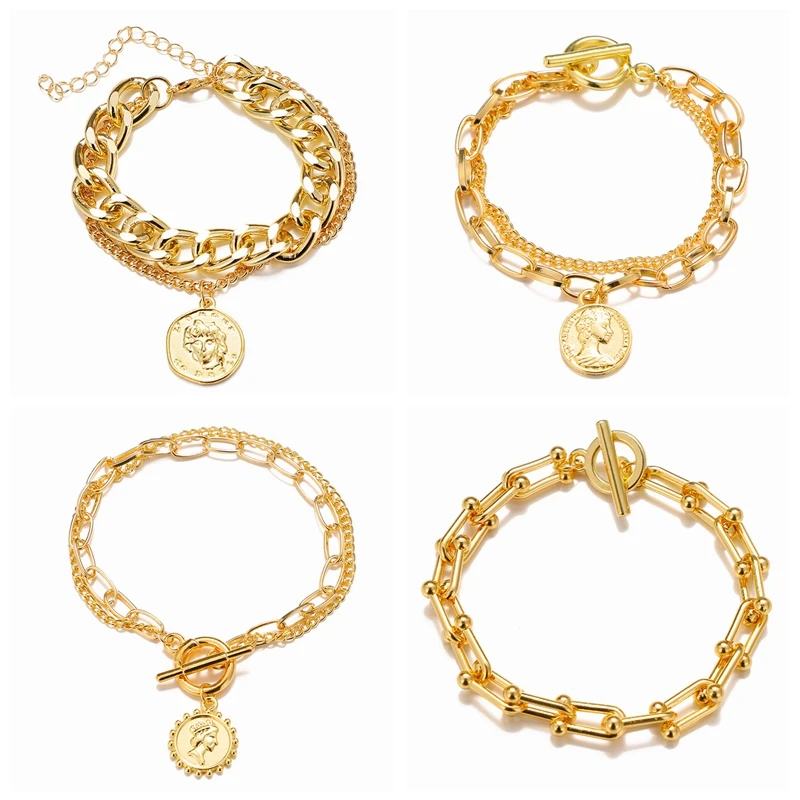 🏆 Поцелуй жена Панк золота многослойные браслеты цепочки и звенья Ретро Винтаж серебро Цвет крест кулон цепи браслеты ювелирные изделия 2021