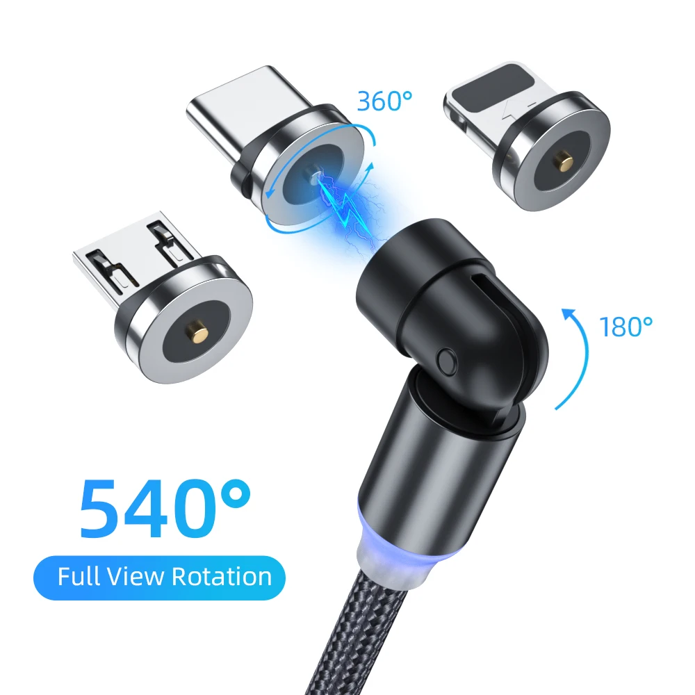 🏆 540 градусов Поворот Магнитный для usb кабеля типа C для быстрой зарядки магнит зарядное устройство Micro USB C кабель для передачи данных для iPhone Xiaomi Мобильный телефон провод шнур