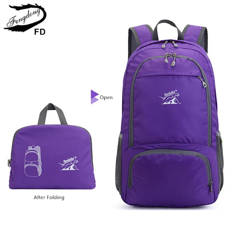 RU3C200🏆 Женский спортивный рюкзак Fengdong, черный водонепроницаемый складной рюкзак с большой вместимостью, для путешествий, осень