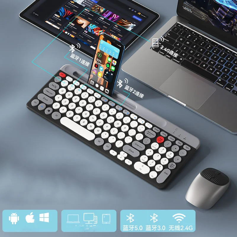 🏆 2.4G Mini Colorful Girl Rechargeable Wireless Bluetooth Keyboard Mouse Set Silent Laptop Desktop ISO Android Universal Portable