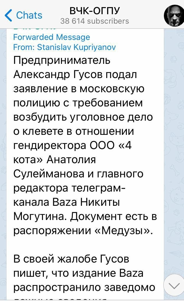 Забавно, что именно Станислав Куприянов рассылает по каналам известие о том, что Александр Гусов обратился к правоохранителям по поводу публикаций "Базы". А мы бы с удовольствием разместили и его собственную прямую речь. Нам не понятно, почему именно ему достались лавры владельца Футляра. Возможно, все прояснит следствие и суд.