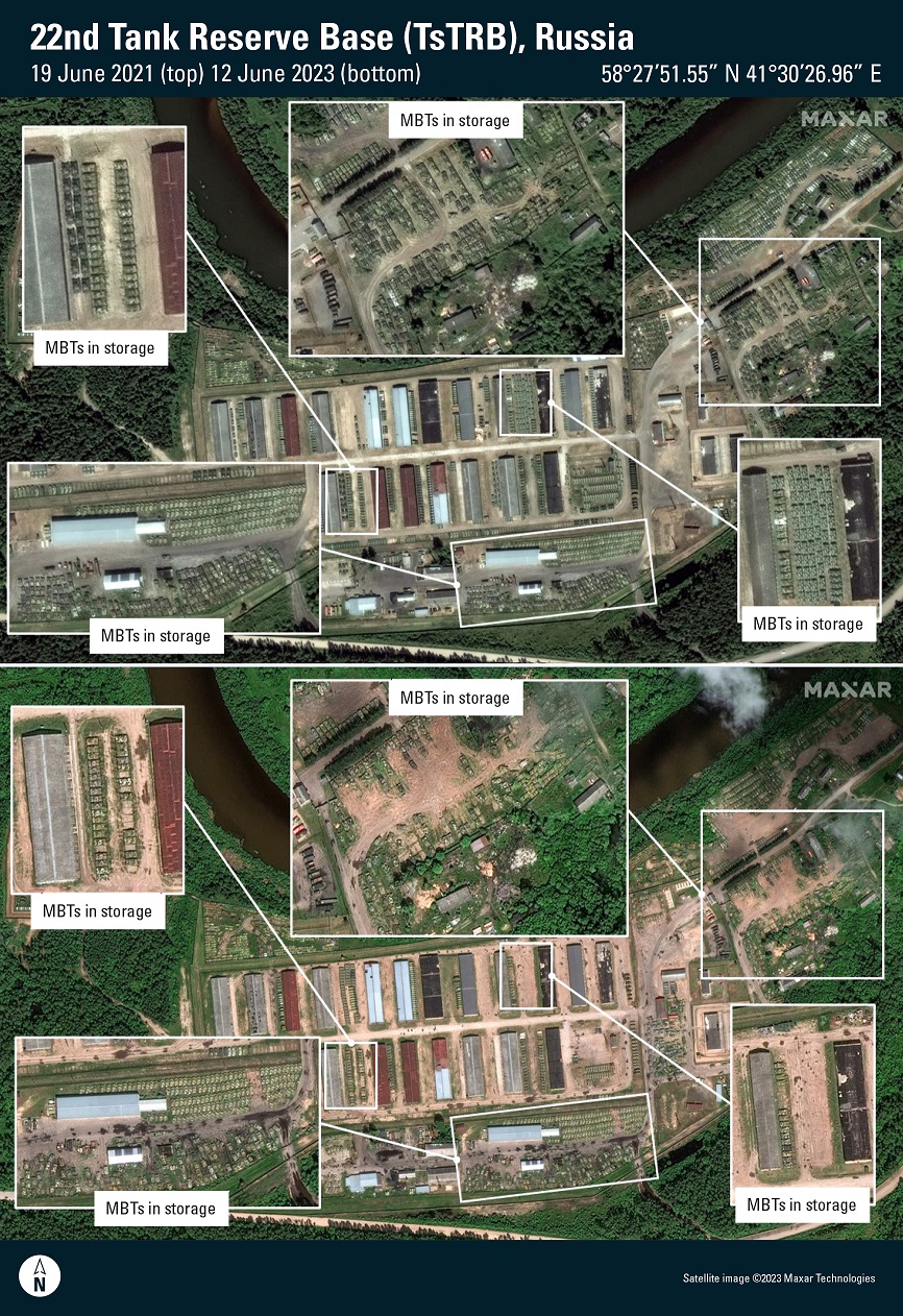 Заявляется, что в России имеется 10 центральных баз танкового резерва, не менее 37 смешанных баз хранения техники и вооружения и не менее 12 баз хранения артиллерийского вооружения. Из них на СВО могут быть направлены как минимум 1180–1280 основных боевых танков и около 2470 БМП и БТР. Однако Россия развернула широкомасштабное военное производство, данные о котором засекречены, что позволит ей методично восполнять парк боевой техники и наращивать его, делая снижение военного потенциала ВС РФ недостижимым.