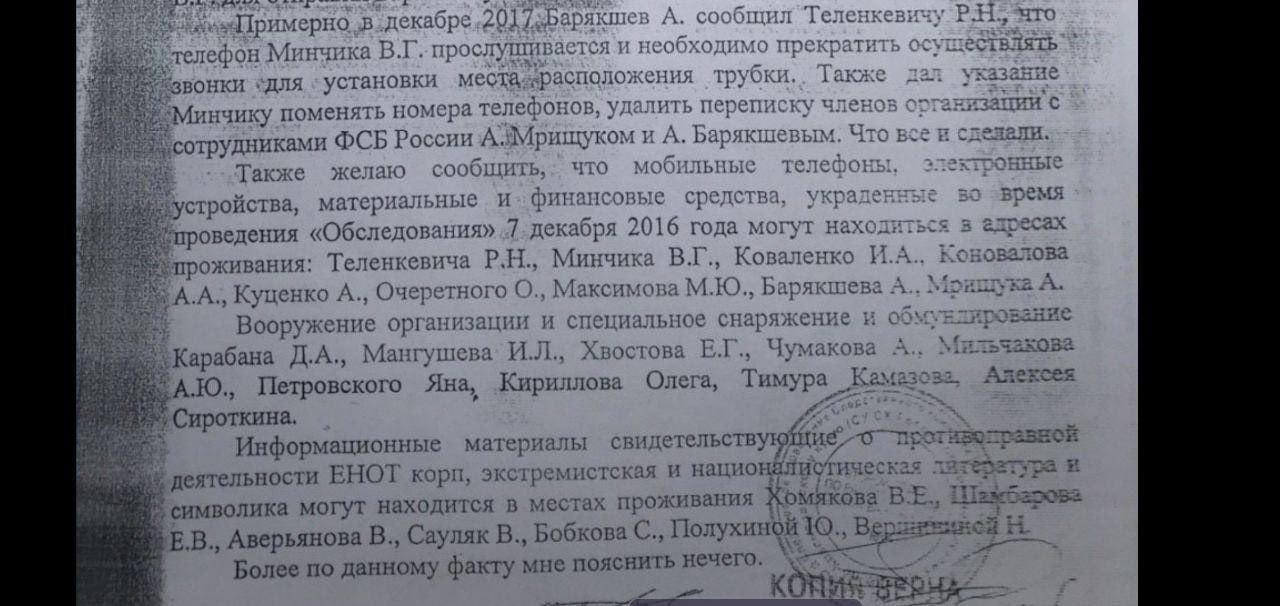 И слив в телеграмм-каналы части протокола допроса, в котром записано, что «информационные материалы, свидетельствующие о противоправной дейтельности «ЕНОТ корп.»… могут находиться по месту проживания… Полухиной Ю.» выглядит откровенно карикатурно. Хотя бы потому, что материалы, добытые Полухиной, были уже обнародованы в её февральской статье.