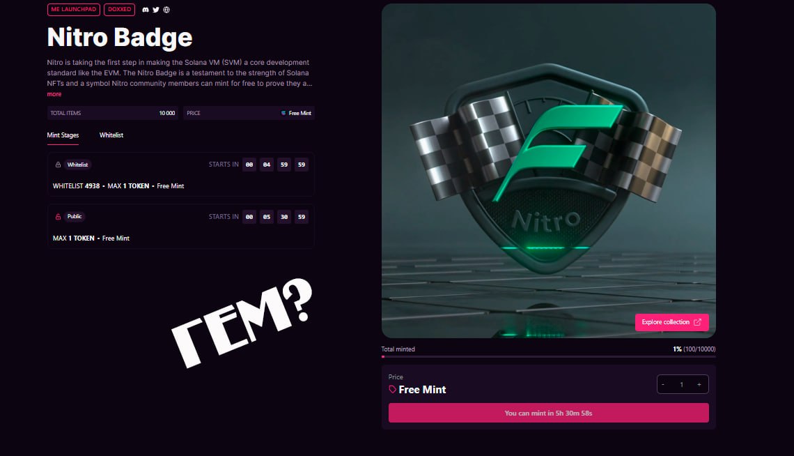 Два интересных FREE минта, куда можно попробовать залететь — Nitro Badge на ME, Primary Pass на Bybit 🌟