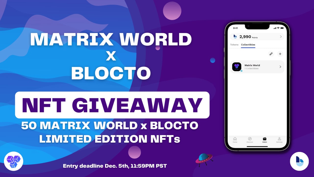💎 Конкурс на 50 NFT от проектов Blocto x Matrix World на 50 NFT 💎