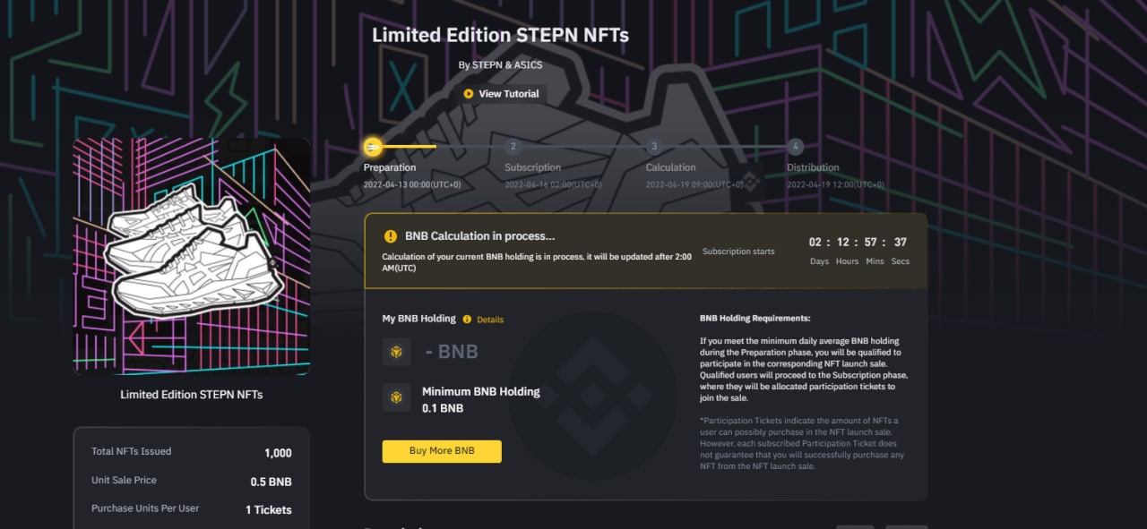💸 Сейчас floor на данные кроссовки 11 SOL а мы будем иметь возможность купить такую пару за 0.5 BNB (200$), да количество не велико всего 1000 шт. но шансы есть, тем более 1 билет на аккаунт