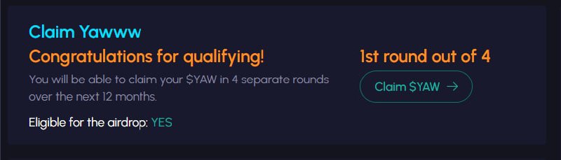 👀 Сейчас можем заклеймить 1/4 токенов (250 $YAW) на 6$, не густо но за то, на халяву.
