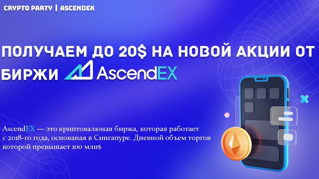 💎Помните писал про биржу AscendEX? У них появилась крутая активность, забираем 20$ за 4 дня