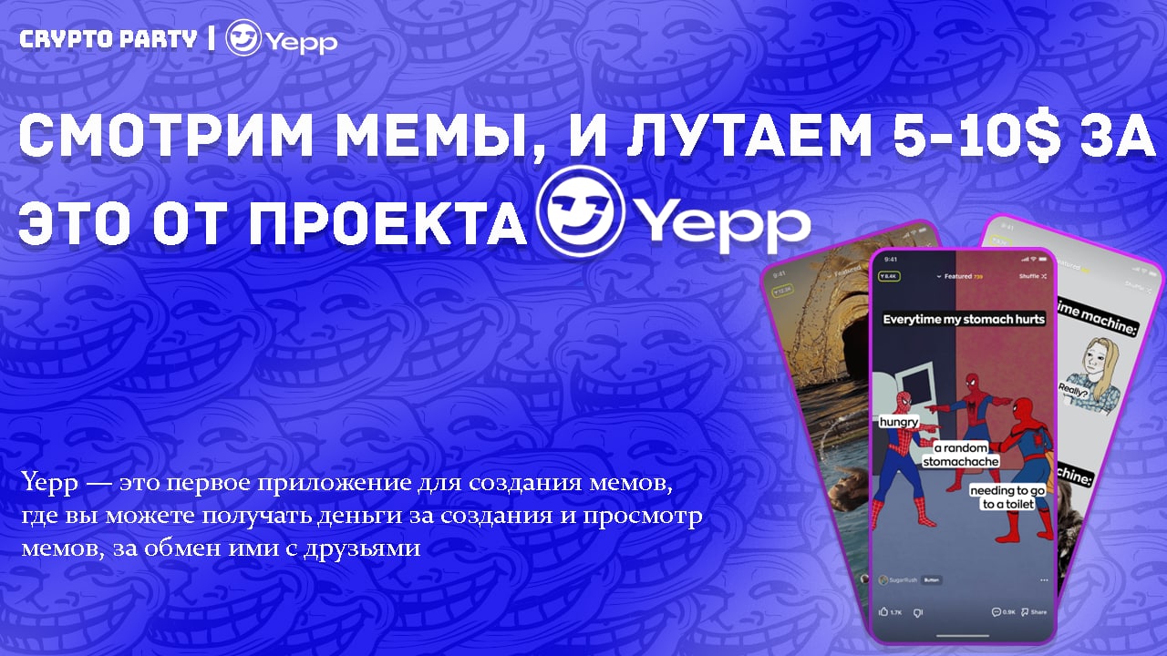 📄 Yepp — это первое приложение для создания мемов, где вы можете получать деньги за создания и просмотр мемов, за обмен ими с друзьями