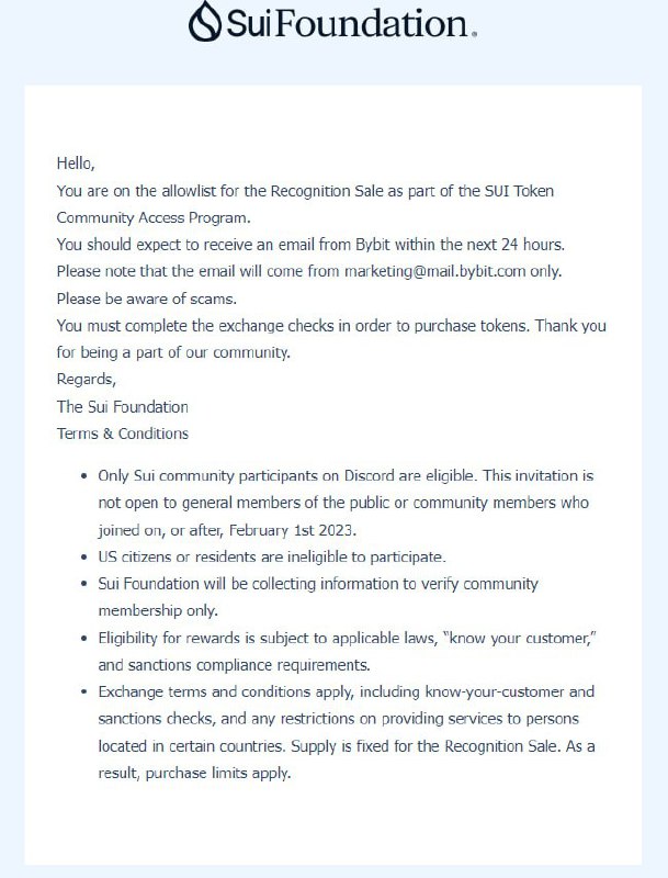 Началась рассылка сообщений по почтам для победителей аллокации от SUI ⚡️
