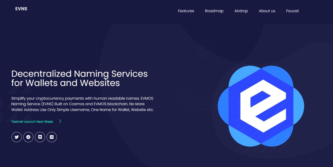 📝 Evmos Name Service - это децентрализованные службы имен для кошельков и веб-сайтов, которая поможет упростить платежи в криптовалюте с помощью удобочитаемых имен