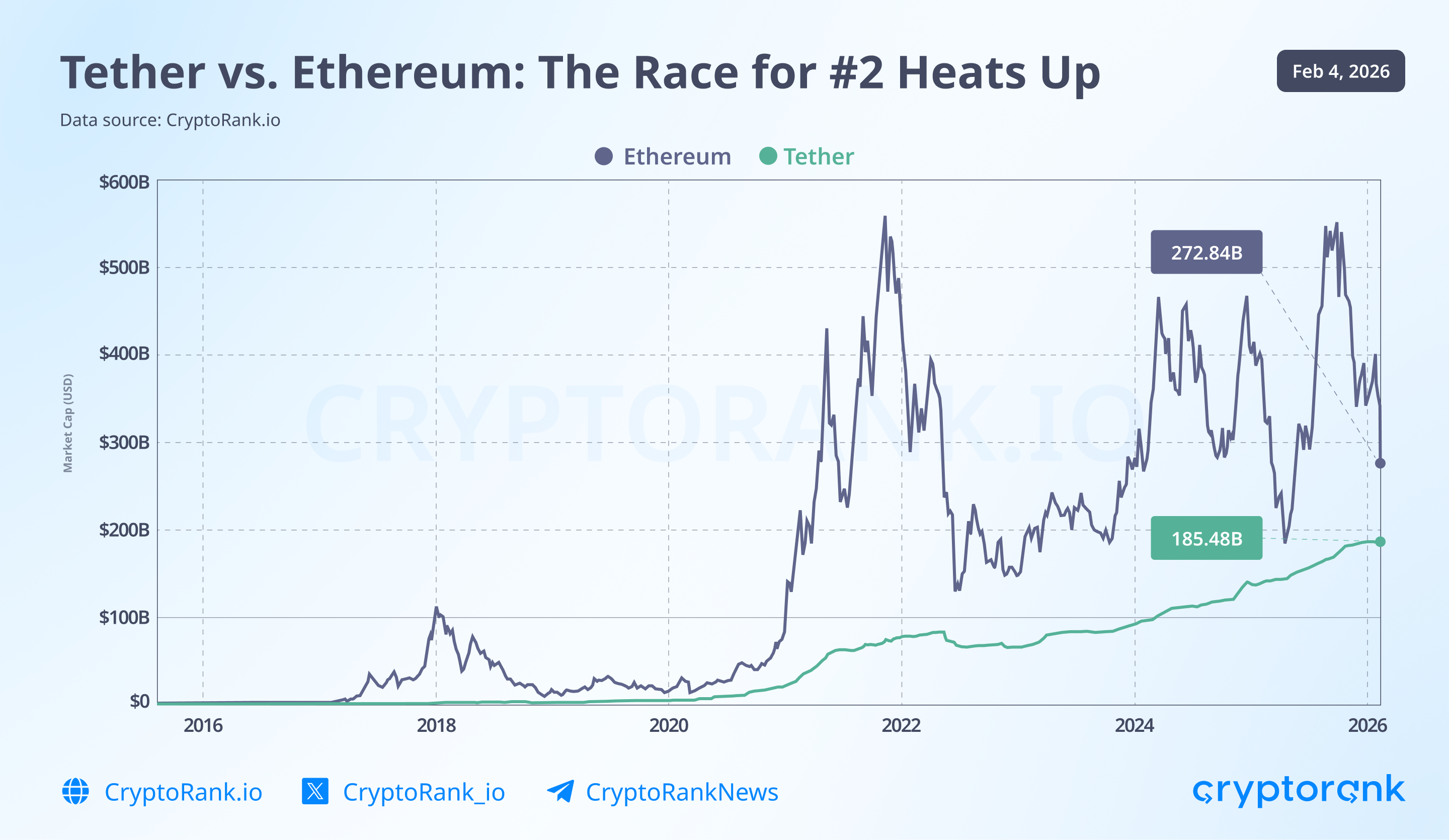 Tether's Market Cap Surge Threatens Ethereum's #2 Crypto Ranking