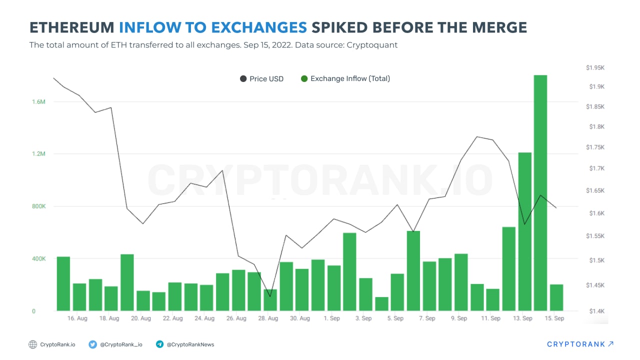 Ethereum Inflow to Exchanges Spiked Before the Merge