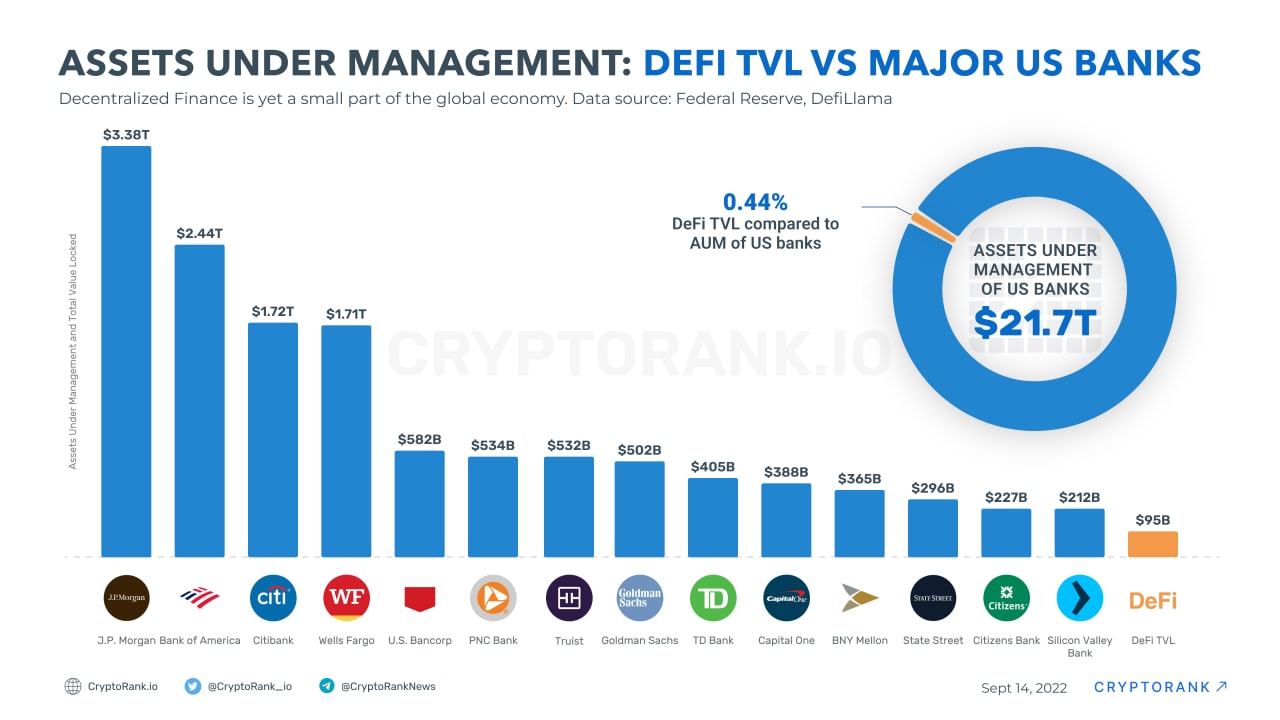 Assets Under Management: DeFi TVL vs Major US Banks