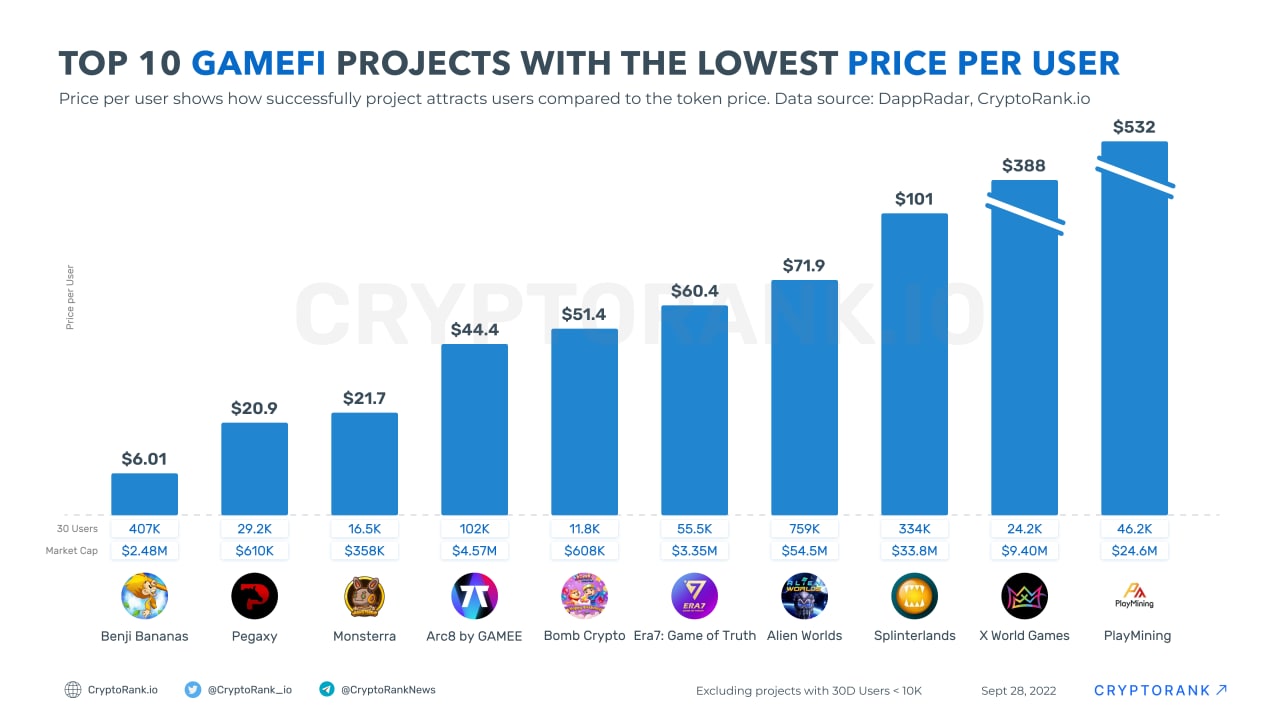 Price per user shows how successfully project attracts users compared to the token price. The cheaper the user, the better it for the project and investors.