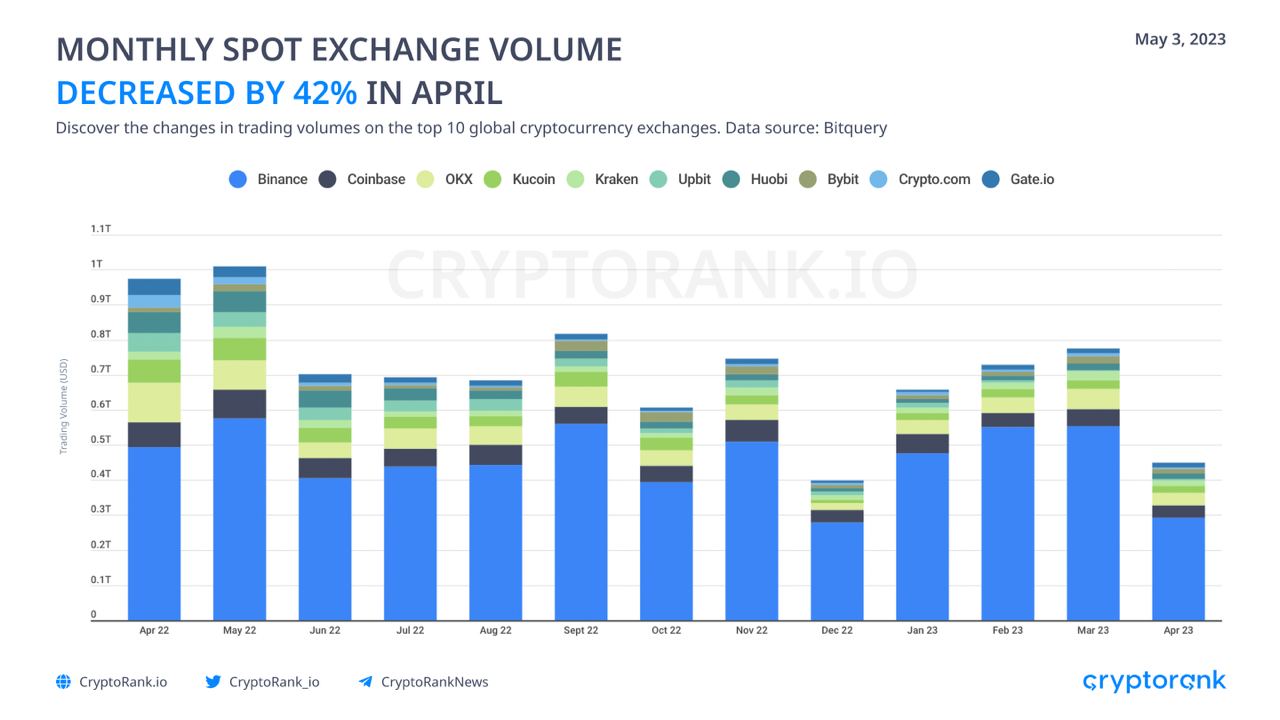 Monthly Spot Exchange Volume Decreased by 42% in April