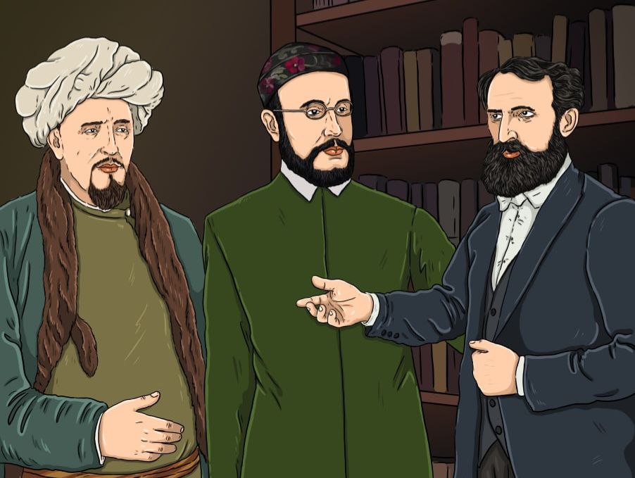 Изображение: «Ученые мужи». Хусаин Фаизханов знакомит Шихабутдина Марджани с Мирзой Казембеком