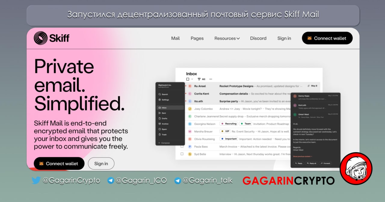 Запустился почтовый сервис Skiff Mail, который пытается решить проблему приватности обычной электронной почты. Все сообщения внутри сети защищены сквозным шифрованием, разработка идёт в open source (клиент можно скачать с GitHub), а все данные хранятся в IPFS.