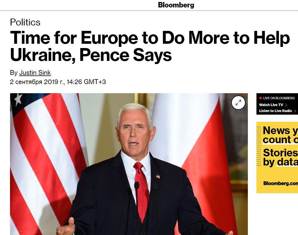 "Вице-президент США во время своего выступления в Варшаве заявил, что забота об Украине «почетной ношей лежала на плечах» США, однако, теперь настало время Евросоюзу принять эту «эстафету»."