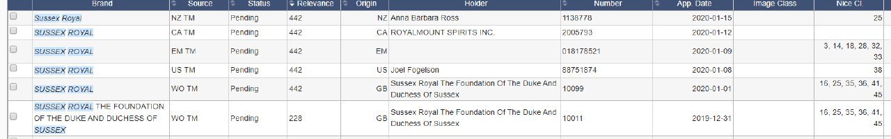 Помните недавнюю историю про заявки на товарные знаки «Sussex Royal», которые помимо королевских молодожёнов под шумок подали и другие компании?