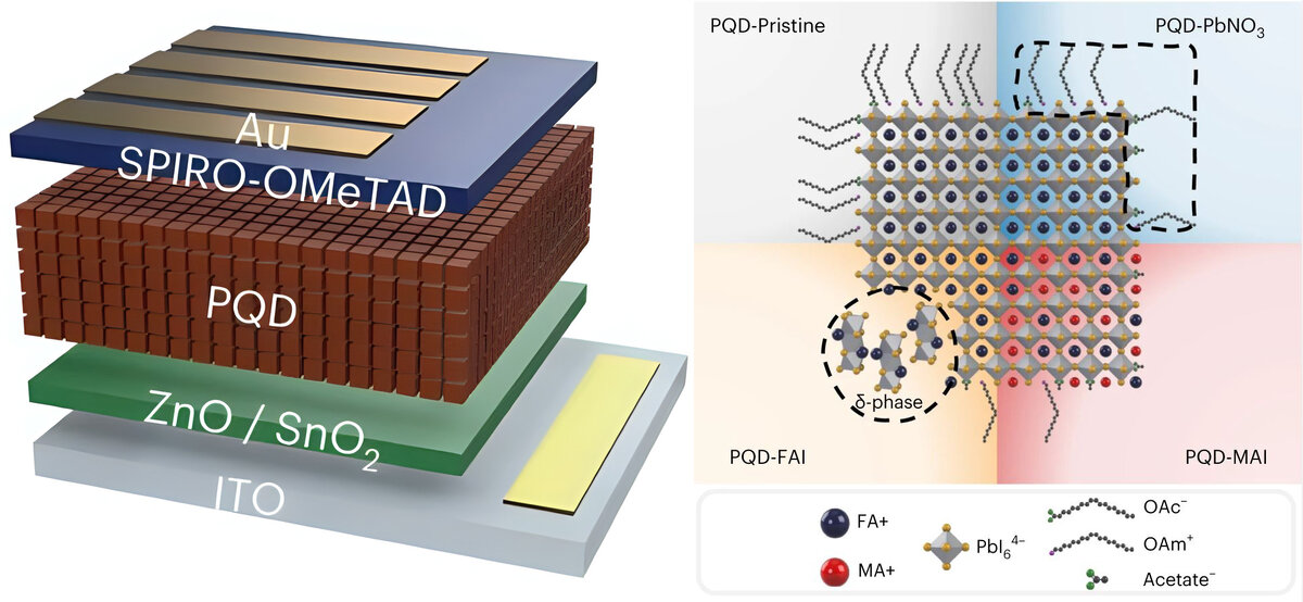 Стратегия обмена лигандами на основе йодида алкиламмония для высокоэффективных солнечных элементов с квантовыми точками на основе перовскита органических катионов (Havid Aqoma et al, Alkyl ammonium iodide-based ligand exchange strategy for high-efficiency organic-cation perovskite quantum dot solar cells), Nature Energy (2024). DOI: 10.1038/s41560-024-01450-9