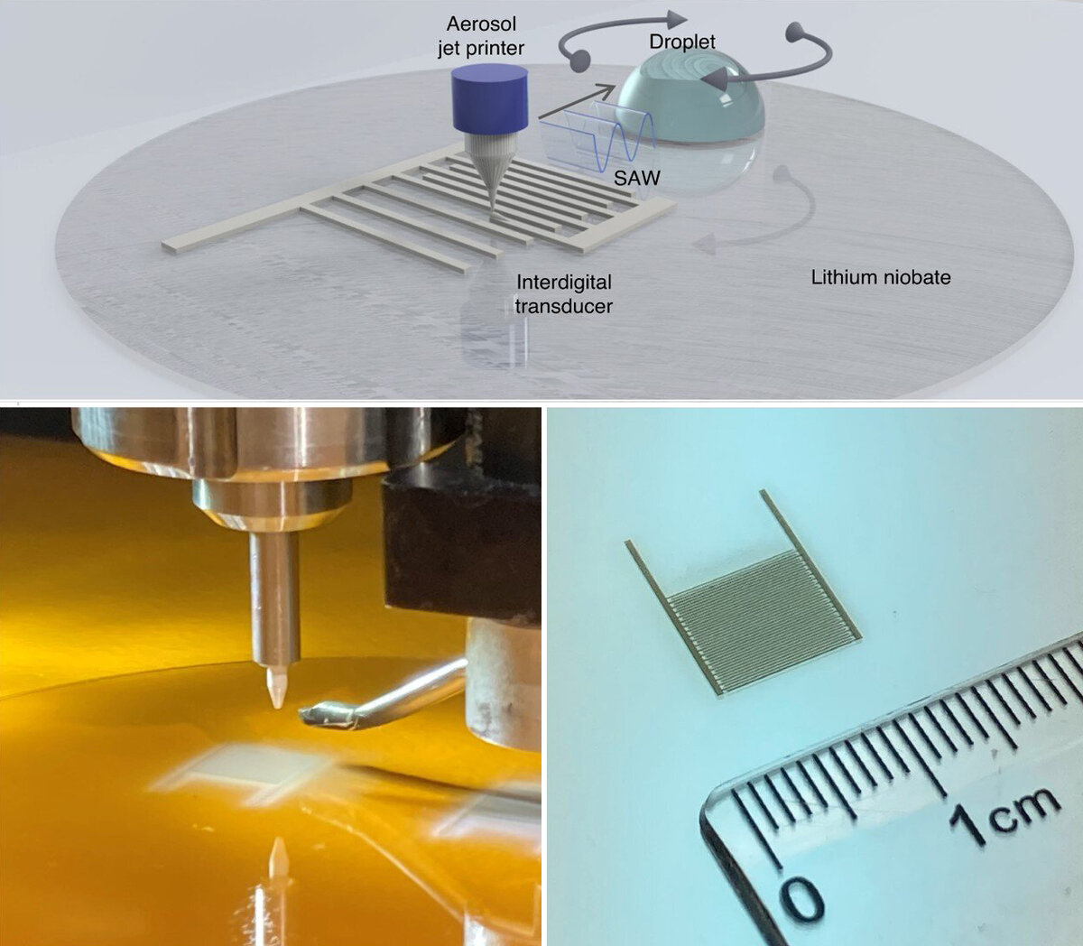 Джозеф Рич и др., Аэрозольная струйная печать микрофлюидных устройств на поверхностных акустических волнах (Joseph Rich et al, Aerosol jet printing of surface acoustic wave microfluidic devices), Microsystems & Nanoengineering (2024). DOI: 10.1038/s41378-023-00606-z