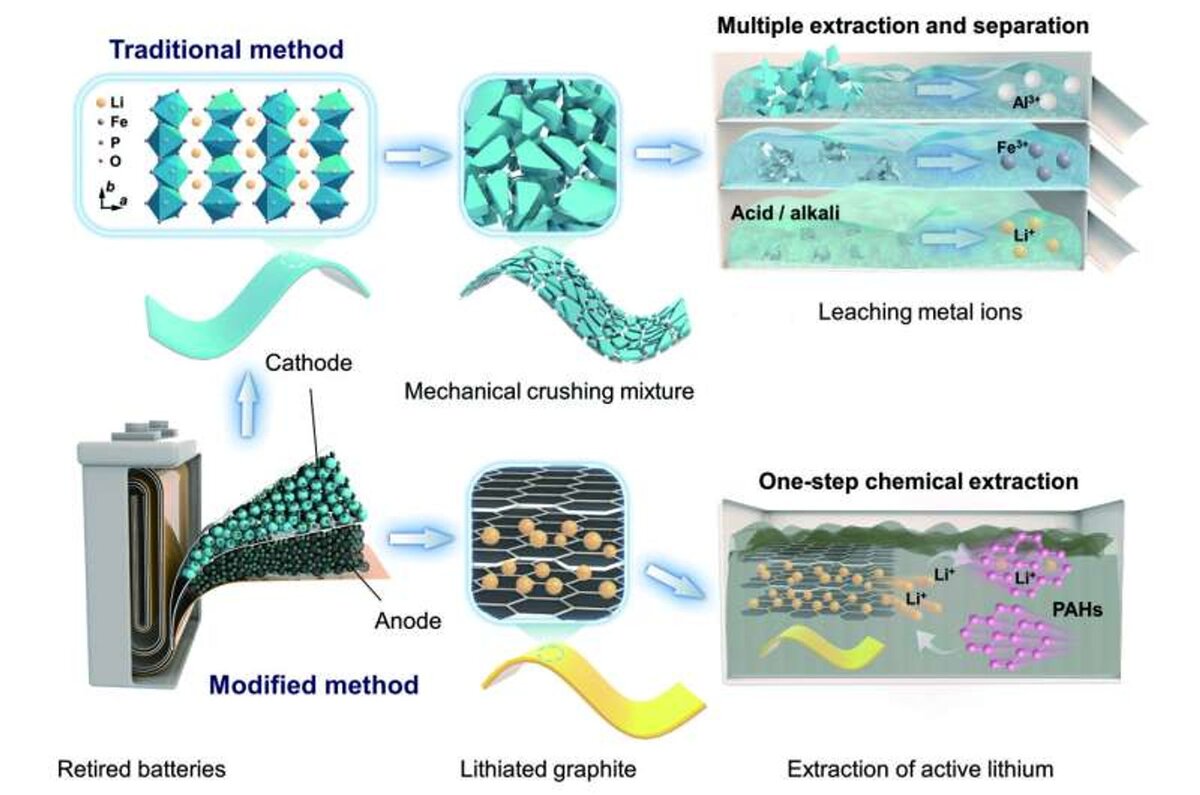 Профессор Се и его команда из Университета науки и технологий Хуачжун обнаружили, что активный литий можно извлечь из "умерших" аккумуляторов при помощи химического выщелачивания. Все гениальное просто: весь трюк заключается в использовании раствора полициклических ароматических углеводородов и эфирных растворителей.