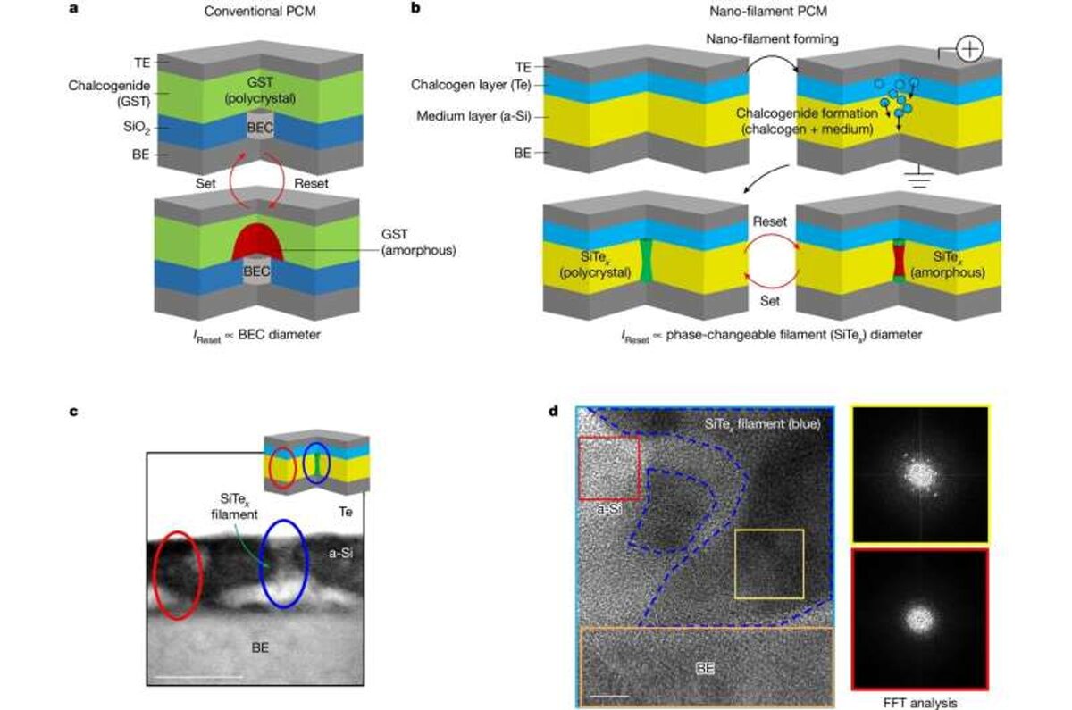 Традиционно, память на основе фазовых переходов требовала сложных и дорогих в производстве технологий, а также значительного количества энергии для работы. Группа профессора Чой нашла решение — устройство с ультранизким потреблением энергии, сформированное на основе электрически изменяемой филаментарной структуры нанометрового размера, что позволяет отказаться от дорогих процессов производства.