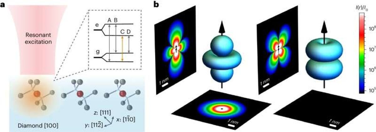 Оказалось, что положение и деформация вакансий (пустот) в кристаллической решётке алмаза сильно влияют на свойства испускаемых фотонов. Вакансии, находящиеся в соседних доменах с разной ориентацией атомов, могут генерировать фотоны с заметно отличающимися цветом и яркостью. Учёные обнаружили, что даже вакансии, расположенные всего в 5 нанометрах друг от друга, могут давать совершенно разные сигналы.