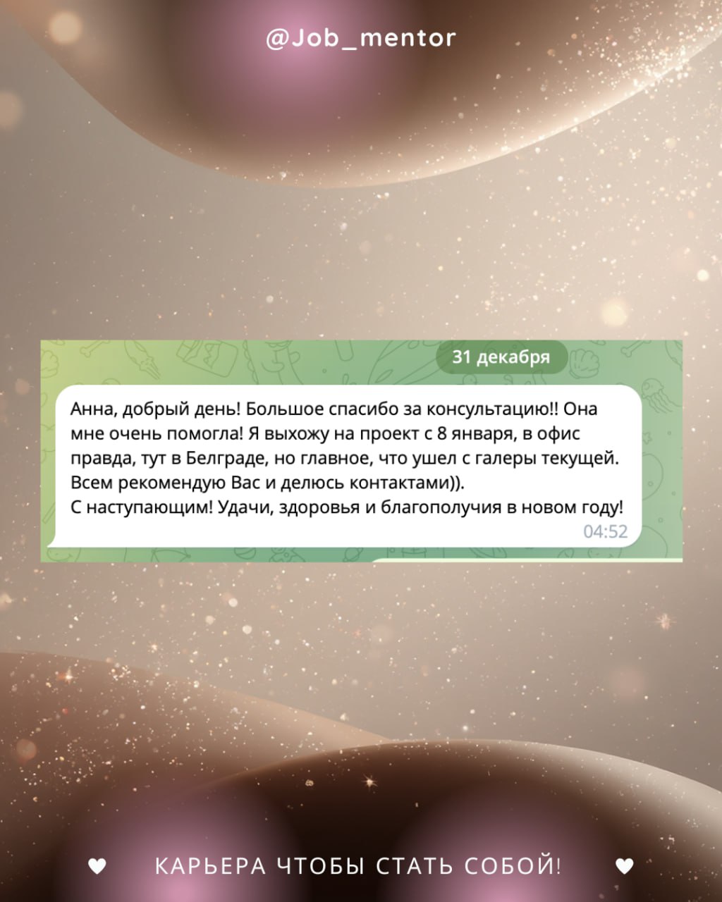 Хочу в новом году поддержать тех, кто готов к такому переходу. В январе есть 10 бесплатных слотов на 30-мин карьерную консультацию, где мы: