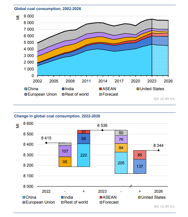Глобальный спрос на уголь продолжит двигаться на восток: Китай, Индия и страны АСЕАН вместе взятые будут потреблять три четверти мирового спроса». — IEA
