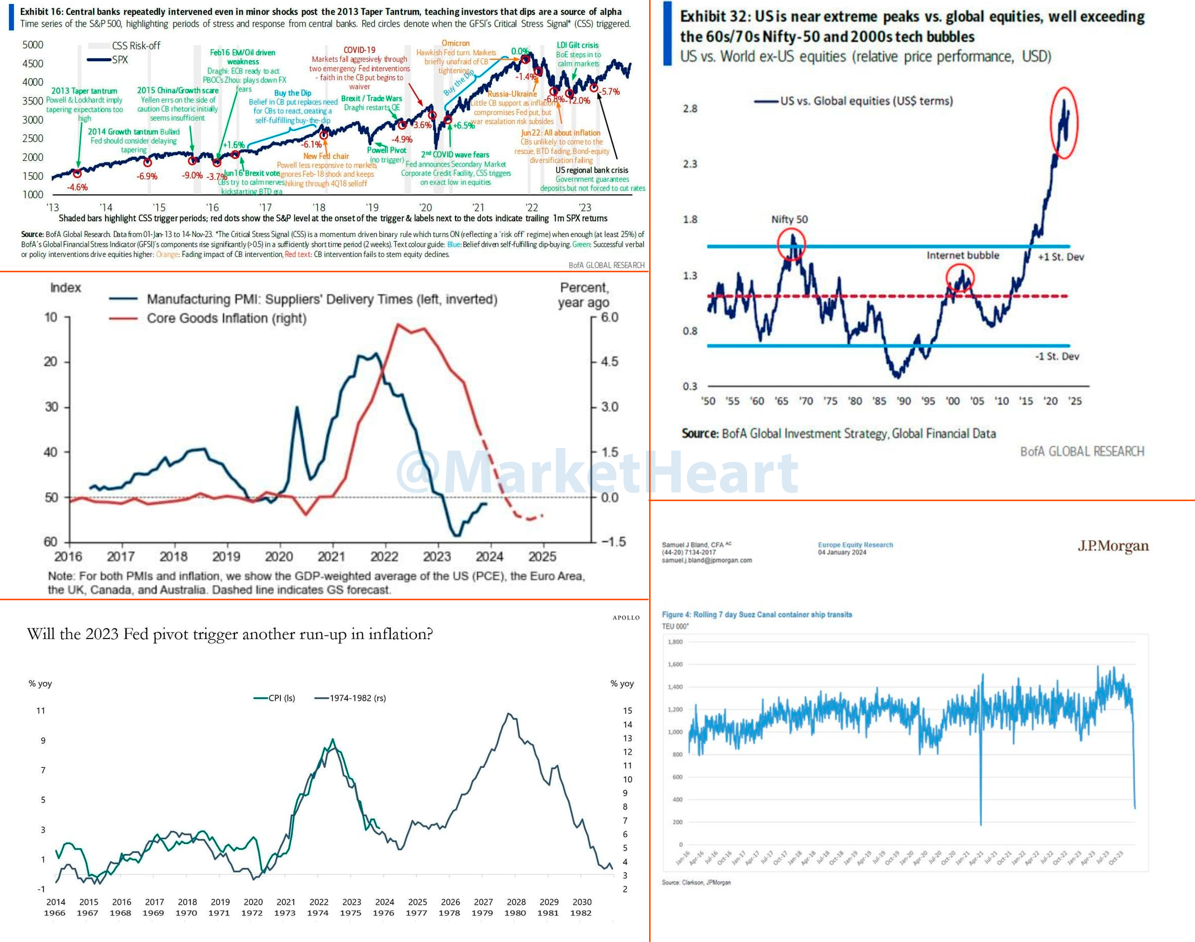 Красивое от блумбергов/Сiti. Внезапно, 2024-ый — год георисков: в топе геополитика/деглобализация/торговые войны (БВ, Тайвань), выборы/инфляция/высокие ставки/рецессия в США. А раньше тогда что было?
